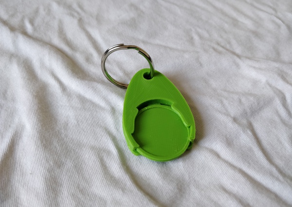 Jeton porte-clé de la taille d'une pièce de 2€.