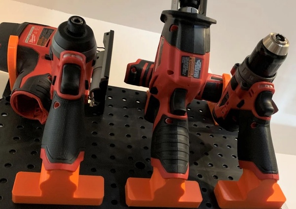 Mounts to standard peg boards to hold your Milwaukee m12 tool. Because all peg boards have a slight variation in hole size, the part may require a light sanding or a little force to fit initially.