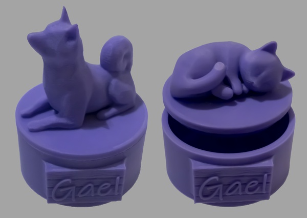 75mm diameter x ~50-100mm high. Customisable name on front and choice of animals/items to be on the lid.