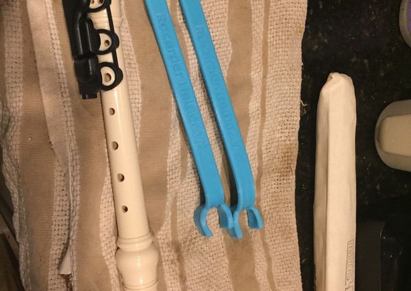 This is a holder for a Yamaha Recorder. This was designed as an assistive device for my son. This snaps onto the end of the recorder and allows it to rest on the user's chest for extra support.