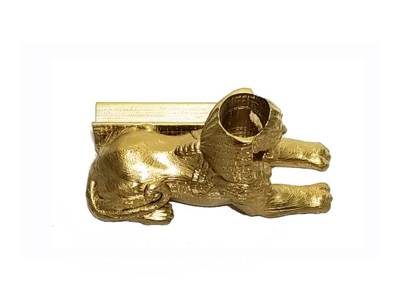 This is a luxurious product that will give a special touch to your desktop. This is a limited edition. It can hold two or three pens and some many business card. This is an object printed in 3D, using (PLA). Also painted in gold metallic color.