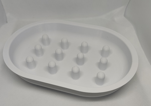 A slow feed bowl for the SureFeed Microchip Pet Feeder. There are replacement bowls available, but none of them are slow feeding. If your cat, like ours, likes to eat their food way too fast this bowl can really help slowing him down. The pins in the bowl make it so the cat has to use their paws to get to the food.