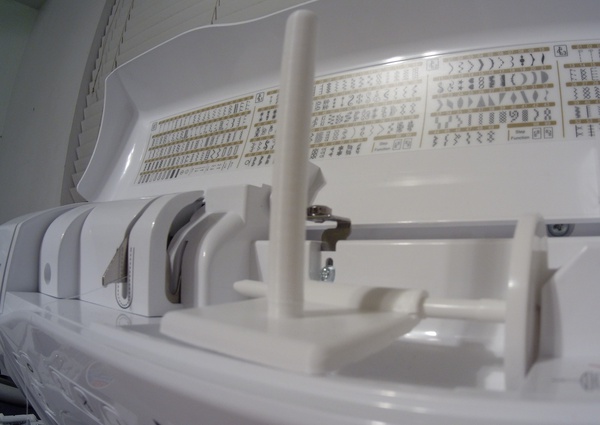 This is a vertical thread Spool holder that slides onto your horizontal spool holder on you sewing machine.