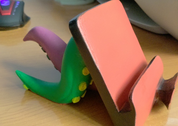 The stand is finished, polished and painted in pla, the pla color is black, but the paint is a maniac mansion stile paint, if you want I can paint it with the colors you select, sice:75mm*160mm*80mm, with the audio out you get more power in the speaker, see the photos. I will delay one week to ship the product because I need to print it, polish it and paint it, the paint is water-based paint for cars, the best quality. If you want it varnished, tell to me.