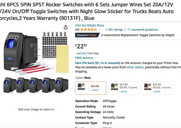 This unit is designed to use rocker switches from Amazon.